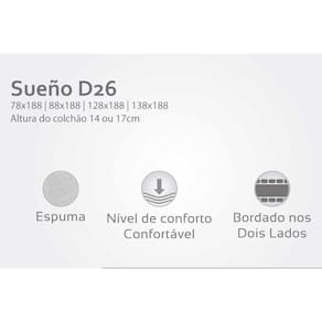 Colchão Solteiro Espuma D26 Sueo Liso (88x188x14) - Herval