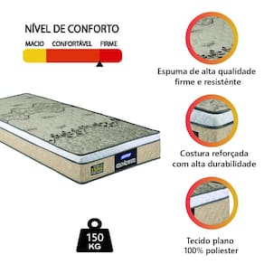 MEDIDAS: [ A ] = 21 cm [ L ] = 88 cm [ P ] = 188 cm PESO SUPORTADO: 150kg por pessoa PESO: 13,6kg MODELO: Colchão Solteiro Fort MARCA: Gazin COR: Bege / Branco REVESTIMENTO SUPERIOR: Capa bordada em tecido plano 100% poliéster, oferecendo toque suave e acabamento elegante REVESTIMENTO TECIDO LATERAL: Faixa lateral em tecido plano 100% poliéster, com acabamento resistente e visual moderno REVESTIMENTO INTERIOR: Espuma D33 de qualidade, que faz com que o colchão suporte até 150kg por pessoa, garantindo durabilidade e conforto POSSUI EPS: Sim ITENS INCLUSOS: 1 Colchão de 0,88m INSTRUÇÕES / CUIDADOS: Utilizar em local seco com passagem de ar, não dobrar, fazer giro quinzenalmente no sentido pés/cabeceira. GARANTIA: 12 meses pelo Fabricante