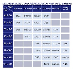 Conforto sem igual! Com o Supreme suas noites de sono nunca mais serão as mesmas! Com a espuma D33, seu novo colchão esbanja conforto e tem a firmeza ideal que acomoda seu corpo de maneira com que ele fique descansado para o dia seguinte. Com rigorosos testes de qualidade, a durabilidade deste colchão é garantida oferecendo milhares de noites de descanso. Seu revestimento em tecido plano, que por sua vez não é propenso ao acúmulo de poeira, tornando sua limpeza mais fácil.