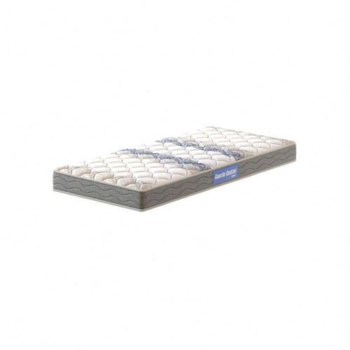 A primeira camada apresenta matelassê com uma manta de espuma D20 revestida em tecido em poliéster branco com detalhes azul e cinza. Possui matelassê nos dois lados do colchão, permitindo a utilização em ambos os lados.