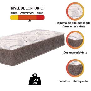 REVESTIMENTO INTERIOR: Poliéster com camada de espuma D28 que faz com que o colchão suporte até 120 kg por pessoa