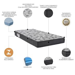 Nesse colchão de solteiro 78x188x18cm, você terá tecnologia em cada detalhe, a começar a base, revolucionária placa EPS, que proporciona um suporte ideal, além de ser ecologicamente correta e garantir maior durabilidade e resistência. Para completar, a camada em espuma D33 Pró Aditivada de Alta Performance adiciona muito mais conforto. Essa combinação é perfeita para pessoas com até 100 quilos, garantindo que cada noite de sono seja uma experiência revigorante e única. Além disso, esse colchão conta com revestimento em tecido Viscopoli, tratado antialérgico e antiácaro. Isso significa que você pode dormir tranquilo, livre de preocupações com alergias e desconfortos.