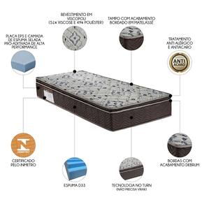 Além disso, o tampo do colchão, bordado em Matelassê, proporciona uma camada extra de conforto que torna cada momento uma experiência única. E para quem se preocupa com a saúde e o bem-estar, o revestimento em Viscopoli conta com tratamento antialérgico e antiácaro, garantindo um ambiente mais limpo e saudável. Invista no seu descanso e transforme o quarto de solteiro com o Colchão Ortobom Isso 1.5.0. Afinal, um bom colchão é o primeiro passo para uma vida cheia de energia e disposição. Para completar, devido a sua estrutura, esse colchão de solteiro conta com o sistema no turn, ou seja, não há necessidade de vira-lo.