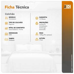 Em Poliéster - O Poliéster possui vantagens significativas, tais como a grande facilidade para dissipar a umidade e garantir que o Colchão Colchão Charleston D28 seja mais confortável para o sono.