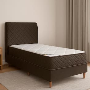 A base box que acompanha o conjunto é resistente e possui 25 cm de altura, complementada por pés de 12 cm que proporcionam firmeza e sofisticação. A cabeceira adiciona um toque de elegância ao ambiente, combinando design moderno com funcionalidade.