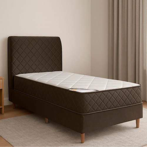 Estrutura em molas ensacadas individualmente e borda lateral em espuma de alto resiliência.