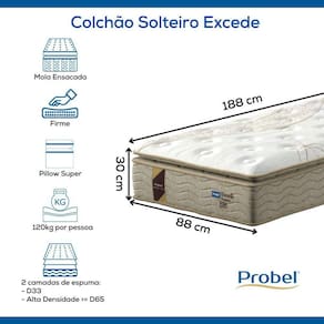 As espumas do Colchão Solteiro Excede Premium foram desenvolvidas com a Tecnologia ProMax Probel, que passam por rigorosos testes de qualidade em laboratório e recebem tratamento antiácaro e antifungo.