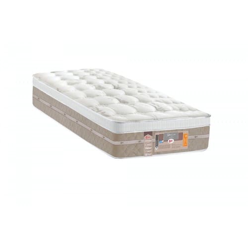 Armação com Tecnologia Suíça: As molas tipo POCKET SYSTEM - Ensacadas individualmente com tela de polipropileno Colagem das molas tipo HOT MELT- Proporciona maior individualidade das molas Bordas perimetrais em Espuma Resistente Revestida por feltro 700 Gr/m2 ou espuma em toda a armação proporcionando maior estabilidade na armação. Enchimento Interno: 01 lâmina de espuma D28 com 8,0 cm de espessura 01 lâmina de espuma D20 com 3,0 cm de espessura.