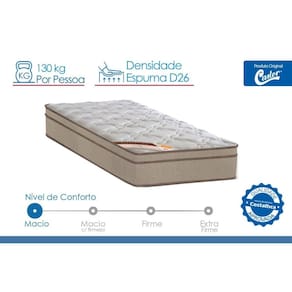 O sistema Tecnopedic garante maior estabilidade e durabilidade, adaptando-se a diferentes biotipos (suporta até 130kg por pessoa em alguns modelos). O acabamento Euro Pillow confere uma camada superior alta e macia (conforto macio) para um acolhimento imediato.