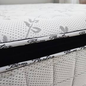 Estrutura em molas ensacadas individualmente e borda lateral em espuma de alto resiliência.
