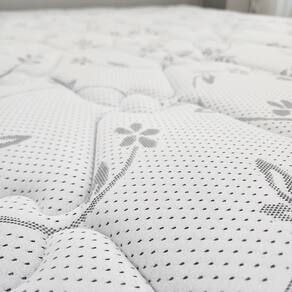 Tecido em malha construída com multifilamentos de poliéster o que proporciona uma malha resistente e com toque macio aumentando a durabilidade do seu colchão.