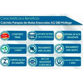 Colchão Solteiro Molas Ensacadas Privilege Euro Pillow (88x188x24) - Paropas