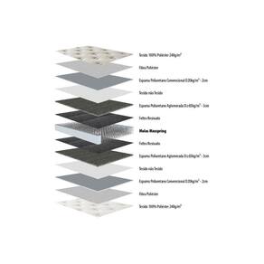 BENEFÍCIOS EXTERNOS DO COLCHÃO Tipo de Pillow - Pillow Top Americano Tipo de Bordado do Tecido de Revestimento - Localizado Tipo Tecido de Forração Revestimento - Malha em Poliéster Tipo de Tecido de Revestimento da Faixa Lateral - Jacquard Tecido com Tratamento - AntiÁcaro e AntiFungo Modo de Utilização - Double Side Tipo de Forração do Revestimento Inferior - Antiderrapante