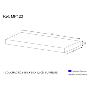 O colchão de solteiro densidade D23 possui estrutura de espuma 100% poliuretano e tecido 100% poliéster.