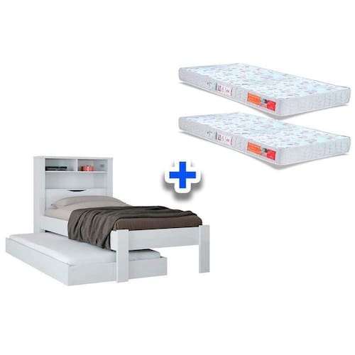 Colchão Solteiro Pérola Polar (2un) + Bicama Invicta Branco