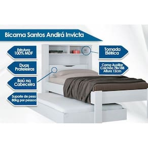 Cama Solteiro Invicta c/Auxiliar Branco - Santos Andirá