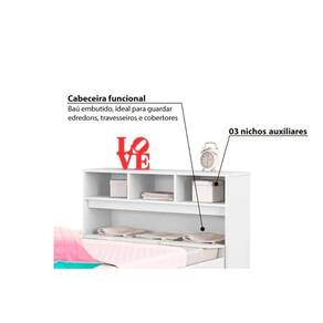 Dimensões(Cm): Comprimento(Profundidade): 219cm x Largura: 101cm x Altura: 102,5cm Material de Estrutura - MDF/MDP Tipo de Pintura - Ultravioleta Tipo de Acabamento da Pintura - Alto Brilho Diferenciais dos Móveis de Quarto - Móvel c/ Baú Tamanho da Cama - Solteiro Tamanho do Colchão Indicado - Solteiro 88x188 Diferenciais das Camas - c/ Gavetas Tipo de Dobradiças - Dobradiças Metálicas Tipo de Corrediça - c/ Corrediças Metálicas Quantidade de Gavetas - 2 Gavetas Quantidade de Prateleiras - 1 Prateleira Quantidade de Nichos - 3 Nichos Montagem do Produto - Desmontável Certificação de Qualidade - Qualidade Aprovada Garantia - Garantia de 90 Dias