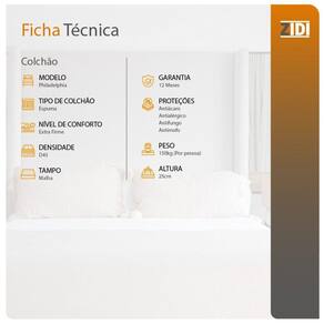 Colchao Solteiro Espuma D45 Philadelphia Extra Firme