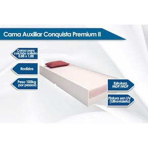 Cama Auxiliar Solteiro Premium II Branco - Conquista