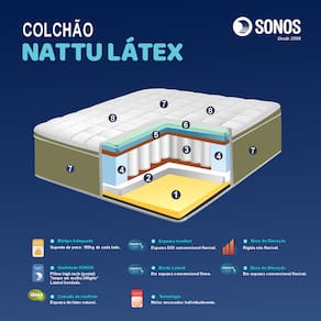 Com o Colchão Sonos Nattu Látex King, você garante noites revigorantes, saúde para a coluna e a excelência de um produto premium Sonos.