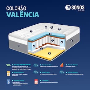Com o Colchão Sonos Valência, você garante noites revigorantes, saúde para a coluna e a confiança de um produto de qualidade Sonos.