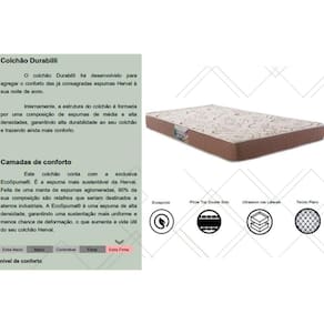 COLCHÃO (CARACTERISTICAS) Tipo de Estrutura do Bloco de Espuma - AG Tipo de Estrutura Ortopédico - AG Densidade da Espuma - D18 - D23 Nível de Firmeza do Colchão - Extra Firme Peso Máximo Suportado - 150 kg