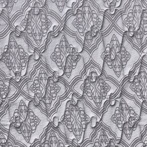 Tecido Tampo: Malha branca com detalhes cinza
