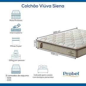 As espumas do Colchão Viúva Siena foram desenvolvidas com a Tecnologia ProMax Probel, que passam por rigorosos testes de qualidade em laboratório e recebem tratamento antiácaro e antifungo.