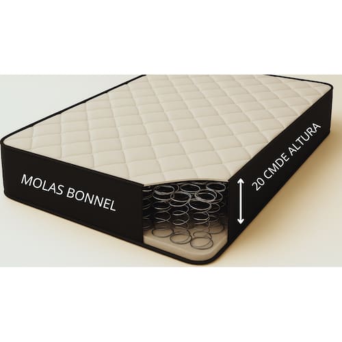 O Colchão com Molas Bonnel é altamente resistente e confortável, proporcionando melhor sustentação e durabilidade ao produto, o tampo é bordado, que entrega uma camada extra de conforto. Seu revestimento é com tratamento antialérgico e antiácaro. Esse é o colchão ideal para toda a família.