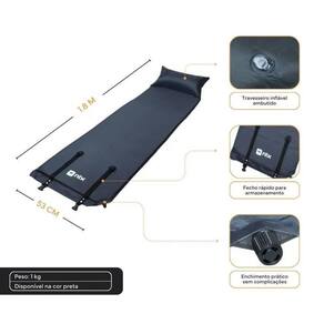 Colchonete Preto Inflável 180x53x3cm com Apoio para a Cabeça Colchonete Preto Inflável 180x53x3cm com Apoio para a Cabeça ===================================== Escolha perfeita para proporcionar conforto nas suas aventuras ao ar livre. Ele é prático, compacto e fácil de transportar, sendo ideal para acampamentos, praia, festivais, piqueniques, camping ou para usar como um apoio extra em casa. Com ele, você consegue preparar um lugar macio para deitar e relaxar, compartilhando mais conforto nas suas horas de descanso. Ele infla rapidamente e, depois de Utilizado, é só esvaziar, dobrar e guardar, ocupando pouquíssimo espaço na bolsa ou no porta-malas. Seu material é resistente e proporciona uma superfície agradável para repousar, compartilhando praticidade e liberdade para usar onde quiser. ===================================== Contém: 01 Colchonete Especificações: - Material: Poliéster 190T revestido com PVC - Medida: 186cm x 53cm x 03cm - Peso: 900 gramas - Cor: Preto ===================================== Devido à diferença entre monitores e iluminação diferentes, pode haver variação na tonalidade apresentada no anúncio. Medidas muito aproximadas. Ean: 6013400051019
