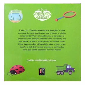 A ideia do "Coleção Sentimentos e Emoções", é abrir um canal de comunicação para que as crianças e adultos consigam identificar tais sentimentos e aprendam a expressas suas emoções dizendo como se sentem, mas sem deixar de lado a outra pessoa. O escritor James Misse lança um olhar diferenciado sobre o tema e nos desafia a trabalhar nossas emoções e sentimentos para que, assim, possamos ser mais felizes! Recomendado por psicólogos e especialistas. Além disso, vem com uma caixa super personalizada, todos os livros da coleção (medo, raiva, feliz e triste), e com os dedoches do nosso personagem Ednelson de todos os títulos (medo, raiva, feliz e triste). Não perca!