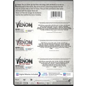 Venom 3-Movie Collection – DVD Multi-feature + Digital - Em Venom: A Última Dança, o filme final da trilogia, Eddie e Venom estão em fuga. Caçados pelos dois mundos, eles são forçados a tomar uma decisão devastadora que vai derrubar as cortinas em sua última dança. Então junte-se a Eddie e Venom em suas aventuras anteriores com o Venom e Venom autênticos: Let There Be Carnage, os sucessos de bilheteria favoritos que solidificou essa amizade heroica.