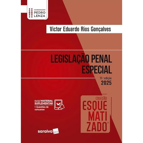 Para o tema da legislação penal especial, tivemos a honra de contar com o trabalho preciso de Victor Eduardo Rios Gonçalves, que soube, com maestria, aplicar a metodologia Esquematizado à vasta e reconhecida experiência profissional como professor, procurador de justiça e autor de consagradas obras. (...) Por tudo isso, esta obra consagra um precioso trabalho não só para os concurseiros do Brasil, como, sem dúvida, para os profissionais e atores do direito que lidam com a temática da legislação penal especial. Pedro Lenza ?