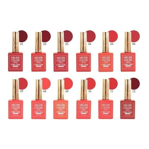Coleção Fashion Red 12 Esmaltes Em Gel Unhas Helen Colors Kit Esmalte em Gel Helen Color, com 12 cores de 15ml cada esmalte, com uma qualidade muito boa, tanto na aplicação como na durabilidade. Perfeito para quem quer renovar as cores que tem, os melhores esmaltes custo benefício.