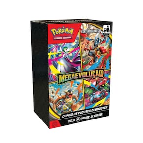 - Box especial da coleção Mega Evolução Pokémon - Contém 18 pacotes de booster com cartas variadas - Possibilidade de encontrar cartas raras e poderosas - Ideal para colecionadores e jogadores - Produto oficial Copag, com qualidade garantida