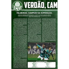 Em comemoração aos 108 anos do maior campeão brasileiro, a Online Editora, em parceria com a Sociedade Esportiva Palmeiras, traz uma grande novidade para os apaixonados pela história e conquistas do time. A Coleção Oficial Histórica do Palmeiras, é uma coletânea com 30 pôsteres dos principais títulos conquistados pelo Verdão ao longo de sua história. Você, torcedor, vai ficar por dentro de: Informações dos campeonatos; elencos; artilheiros; clubes participantes; fotos do time campeão; e muito mais! A edição Nº 19 da coleção traz o time Bicampeão da Copa do Brasil de 2012. Uma coleção histórica e apaixonante para o torcedor Alviverde! Não perca! Formato do pôster aberto 82,0 x 55,0 cm