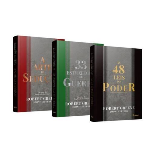 Domine a arte do poder e da estratégia e da sedução com esse combo contendo três livros fundamentais de Robert Greene . 48 Leis do Poder - capa dura - Essa edição resumida traz a essência do clássico absoluto de Robert Greene, best seller da lista dos mais vendidos da Veja. Todos querem ter poder. Mas poucos sabem o que fazer para alcançá-lo. Como conseguir aquela tão esperada? O que fazer para conquistar a admiração dos colegas e neutralizar quem vive tentando derrubá-lo? Como ser o queridinho do chefe? Em As 48 leis do poder, o leitor aprende a manipular pessoas e situações para alcançar seus objetivos. E descobre por que alguns conseguem ser tão bem-sucedidos, enquanto outros estão sempre sendo passados para trás. Querer ser melhor do que o chefe, por exemplo, é um erro fatal. "Faça com que as pessoas acima de você se sintam confortavelmente superiores(...) Faça com que seus mestres pareçam mais brilhantes do que são na realidade e você alcançará o ápice do poder", diz Robert Greene no capítulo “Não ofusque o brilho do mestre”. Além de oferecer o “caminho das pedras”, ele cita casos de sucesso e de fracasso revelados à luz de suas regras. Para ilustrar o que diz, Greene recorre a fábulas e a episódios reais da História, e usa e abusa de citações. O leitor se embrenha pela cartilha através de estrategistas como Clausewitz e Sun-Tsu, estadistas como Bismarck, sedutores como Casanova, filósofos como Nietzsche, escritores como Balzac e, claro, diplomatas como Maquiavel. Os textos abarcam um período de mais de três mil anos e foram pinçados em civilizações tão diferentes quanto a antiga China e a Itália renascentista. E, para quem acredita que participar de jogos de poder é uma atividade condenável, ele faz um alerta: Não adianta querer ficar de fora. O mundo é como um imenso e dissimulado cassino e todos nós fazemos parte dele. Quanto mais rápido você descobrir as regras do jogo, maiores serão as suas chances de sucesso. "Se o jogo do poder é inevitável, vale mais ser um artista do que negar ou agir desastradamente", diz Greene. A Arte da Sedução - capa dura - Essa edição resumida traz a essência do livro fundamental de Robert Greene. Quando nos apaixonamos, caímos numa espécie de encantamento. Nossa mente, em geral preocupada com seus próprios problemas, só pensa no ser amado. O ser hipnotizado se rende à vontade daquele que o seduziu. Sedutores são aquelas pessoas que sabem o tremendo poder contido nestes momentos de entrega absoluta. A arte da sedução – edição concisa dá ao leitor a oportunidade de aprender o legado dos maiores sedutores da civilização – de John F. Kennedy a Napoleão Bonaparte, de Pablo Picasso a Cleópatra. Para Greene, o ato de seduzir é racional e pode ser desenvolvido. Para isso, é necessário conhecer suas próprias características sedutoras. Depois, é fundamental estudar a vítima que será seduzida.Nove tipos compõem o painel de sedutores-chave descrito por Robert Greene. E o autor propõe o autoconhecimento como meta para que o potencial de sedução se realize plenamente. Depois de mapear as personalidades mais marcantes, o autor instrui como agir para que a vítima se renda total e incondicionalmente. O leitor pode se deliciar com as frases, comentários e exemplos de filósofos e escritores como Ovídio, Nietzsche, Plutarco, Soren Kierkegaard, Sthendal e Virginia Woolf. O texto irônico e divertido de Robert Greene constrói um manual de estratégia para aqueles que desejam se aprimorar na arte da conquista amorosa. E que será útil também em outros setores da vida nos quais a sedução é fundamental. 33 Estratégias de Guerra - capa dura - Na vida, você tem de ser um guerreiro, e guerra requer realismo. Esse é o espírito das 33 estratégias de guerra, de Robert Greene: preparar cada um de nós para as inúmeras batalhas que travamos diariamente. Autor do bestseller As 48 leis do poder, Greene parte da premissa de que o conflito é inevitável. O desafio, portanto, é o que fazer diante deste cenário. Greene nos apresenta cinco tipos de guerras que certamente travaremos: guerra autodirigida, organizacional, defensiva, ofensiva e não convencional. Além de explicar cada uma, ele traz uma série de citações de grandes estrategistas e pensadores que conseguiram impor seus desejos ao mundo, como Alexandre, Napoleão Bonaparte, Hernán Cortez, Margaret Thatcher, Nietzsche, Sun Tzu, Maquiavel, entre outros. Seus pensamentos servirão de guia para uma aplicação direta e eficaz no dia a dia.