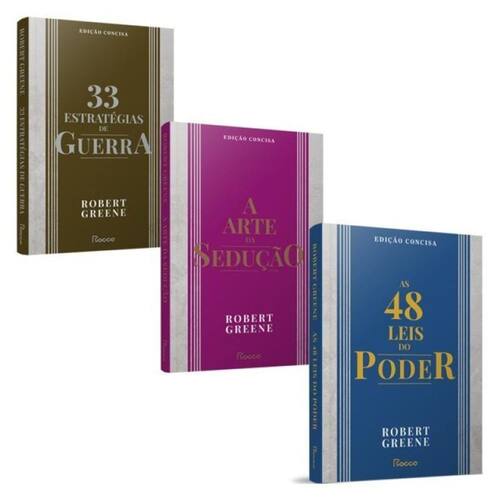 Domine a arte do poder e da estratégia e da sedução com esse combo contendo três livros fundamentais de Robert Greene . 48 Leis do Poder conciso - Essa edição resumida traz a essência do clássico absoluto de Robert Greene, best seller da lista dos mais vendidos da Veja. Todos querem ter poder. Mas poucos sabem o que fazer para alcançá-lo. Como conseguir aquela tão esperada? O que fazer para conquistar a admiração dos colegas e neutralizar quem vive tentando derrubá-lo? Como ser o queridinho do chefe? Em As 48 leis do poder, o leitor aprende a manipular pessoas e situações para alcançar seus objetivos. E descobre por que alguns conseguem ser tão bem-sucedidos, enquanto outros estão sempre sendo passados para trás. Querer ser melhor do que o chefe, por exemplo, é um erro fatal. "Faça com que as pessoas acima de você se sintam confortavelmente superiores(...) Faça com que seus mestres pareçam mais brilhantes do que são na realidade e você alcançará o ápice do poder", diz Robert Greene no capítulo “Não ofusque o brilho do mestre”. Além de oferecer o “caminho das pedras”, ele cita casos de sucesso e de fracasso revelados à luz de suas regras. Para ilustrar o que diz, Greene recorre a fábulas e a episódios reais da História, e usa e abusa de citações. O leitor se embrenha pela cartilha através de estrategistas como Clausewitz e Sun-Tsu, estadistas como Bismarck, sedutores como Casanova, filósofos como Nietzsche, escritores como Balzac e, claro, diplomatas como Maquiavel. Os textos abarcam um período de mais de três mil anos e foram pinçados em civilizações tão diferentes quanto a antiga China e a Itália renascentista. E, para quem acredita que participar de jogos de poder é uma atividade condenável, ele faz um alerta: Não adianta querer ficar de fora. O mundo é como um imenso e dissimulado cassino e todos nós fazemos parte dele. Quanto mais rápido você descobrir as regras do jogo, maiores serão as suas chances de sucesso. "Se o jogo do poder é inevitável, vale mais ser um artista do que negar ou agir desastradamente", diz Greene. A Arte da Sedução conciso - Essa edição resumida traz a essência do livro fundamental de Robert Greene. Quando nos apaixonamos, caímos numa espécie de encantamento. Nossa mente, em geral preocupada com seus próprios problemas, só pensa no ser amado. O ser hipnotizado se rende à vontade daquele que o seduziu. Sedutores são aquelas pessoas que sabem o tremendo poder contido nestes momentos de entrega absoluta. A arte da sedução – edição concisa dá ao leitor a oportunidade de aprender o legado dos maiores sedutores da civilização – de John F. Kennedy a Napoleão Bonaparte, de Pablo Picasso a Cleópatra. Para Greene, o ato de seduzir é racional e pode ser desenvolvido. Para isso, é necessário conhecer suas próprias características sedutoras. Depois, é fundamental estudar a vítima que será seduzida.Nove tipos compõem o painel de sedutores-chave descrito por Robert Greene. E o autor propõe o autoconhecimento como meta para que o potencial de sedução se realize plenamente. Depois de mapear as personalidades mais marcantes, o autor instrui como agir para que a vítima se renda total e incondicionalmente. O leitor pode se deliciar com as frases, comentários e exemplos de filósofos e escritores como Ovídio, Nietzsche, Plutarco, Soren Kierkegaard, Sthendal e Virginia Woolf. O texto irônico e divertido de Robert Greene constrói um manual de estratégia para aqueles que desejam se aprimorar na arte da conquista amorosa. E que será útil também em outros setores da vida nos quais a sedução é fundamental. 33 Estratégias de Guerra conciso - Na vida, você tem de ser um guerreiro, e guerra requer realismo. Esse é o espírito das 33 estratégias de guerra, de Robert Greene: preparar cada um de nós para as inúmeras batalhas que travamos diariamente. Autor do bestseller As 48 leis do poder, Greene parte da premissa de que o conflito é inevitável. O desafio, portanto, é o que fazer diante deste cenário. Greene nos apresenta cinco tipos de guerras que certamente travaremos: guerra autodirigida, organizacional, defensiva, ofensiva e não convencional. Além de explicar cada uma, ele traz uma série de citações de grandes estrategistas e pensadores que conseguiram impor seus desejos ao mundo, como Alexandre, Napoleão Bonaparte, Hernán Cortez, Margaret Thatcher, Nietzsche, Sun Tzu, Maquiavel, entre outros. Seus pensamentos servirão de guia para uma aplicação direta e eficaz no dia a dia.