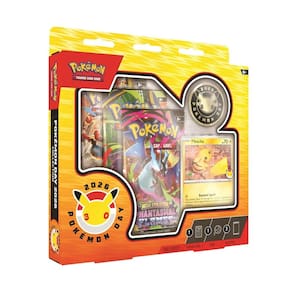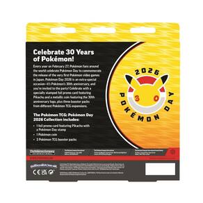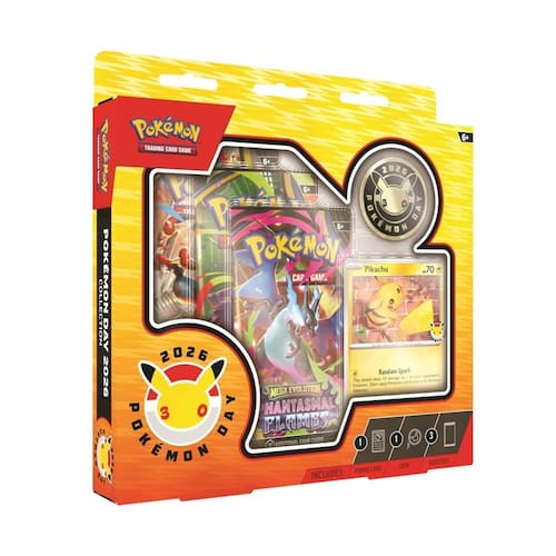 O Ano de 2026 é uma ocasião extra especial é o 30º aniversário do Pokémon, Para destacar este evento, esta coleção inclui um cartão promocional especialmente estampado com Pikachu e uma moeda metálica com o logotipo do 30º aniversário Você também receberá três boosters de diferentes expansões Pokémon TCG. (Cada pacote de reforço contém 10 cartas de jogo, 1 Basic Energy e 1 cartão de código Pokémon TCG Live. Todos os anos, no dia 27 de fevereiro, fãs da Pokémon em todo o mundo celebram o Pokémon Day para comemorar o lançamento dos primeiros videogames Pokémon no Japão Este é um produto fantástico para colecionadores e jogadores que adicionará ótimas cartas à sua coleção