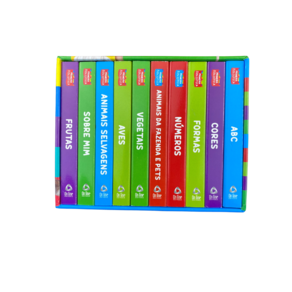 A "Coleção Minha Primeira Biblioteca Volume 01 - Box com 10 Livrinhos" desenvolvido especialmente para bebês, reunindo títulos que abordam os primeiros conceitos de vocabulário: ABC, Números, Formas, Cores, Sobre Mim, Animais Selvagens, Animais da Fazenda e Pets, Aves, Frutas e Vegetais. Cada livro é ricamente ilustrado e projetado para estimular o desenvolvimento linguístico, visual e cognitivo dos pequenos, tornando o aprendizado uma experiência divertida e envolvente desde os primeiros anos de vida.