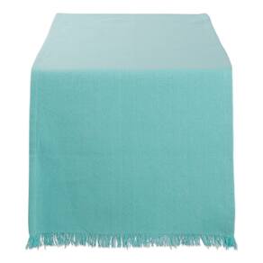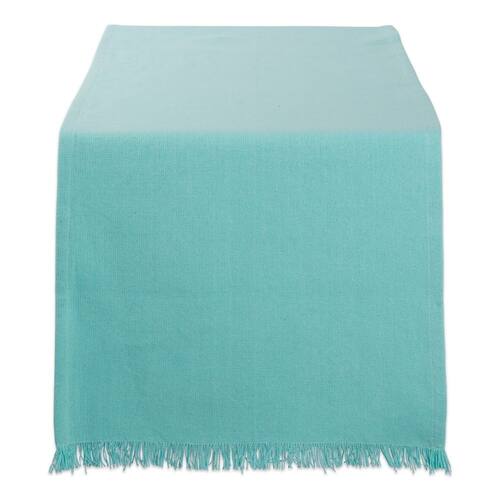 Coleção DII Everyday, mesa Fringed Check, corredor de mesa, 14 x 108, Solid Aqua