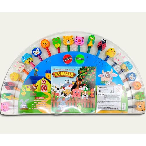 A Coleção Universo das Cores - Animais convida as crianças a explorar o mundo da natureza através de páginas cativantes repletas de animais para colorir, incentivando a criatividade e a aprendizagem enquanto se divertem. Acompanha 1 livro para colorir com 48 páginas, 2 apontadores, 20 lápis de cores e 20 borrachas especiais.