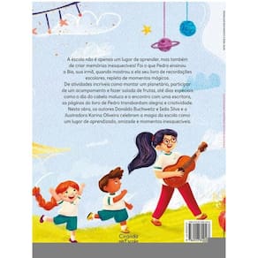 A escola não é apenas um lugar de aprender, mas também de criar memórias inesquecíveis! Foi o que Pedro ensinou a Bia, sua irmã, quando mostrou a ela seu livro de recordações escolares, repleto de momentos mágicos. De atividades incríveis como montar um planetário, participar de um acampamento e fazer salada de frutas, até dias especiais como o dia do cabelo maluco e o encontro com uma escritora, as páginas do livro de Pedro transbordam alegria e criatividade. Nesta obra, os autores Donaldo Buchweitz e Ieda Silva e a ilustradora Karina Oliveira celebram a magia da escola como um lugar de aprendizado, amizade e momentos inesquecíveis Marca: CIRANDA NA ESCOLA