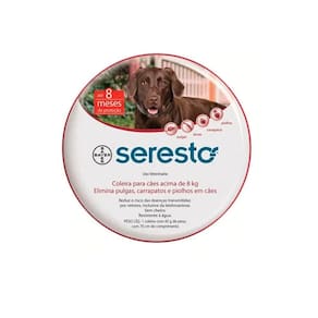 Seresto(coleira grande) É um produto destinado ao controle de pulgas, carrapatos e piolhos somente de cães acima de 8 kg. Seresto também reduz o risco de doenças transmitidas por vetores. Sua apresentação em forma de coleira ajustável, traz praticidade na forma de utilização (basta colocá-la ao redor do pescoço do seu animalzinho, ajustá-la se necessário e pronto). Baixas doses dos ingredientes ativos são liberadas continuamente, sendo seguro para os animais e para a família.