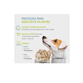 • 1 Coleira antipulgas Seresto para Cães até 8kg e Gatos 12,5g com 38cm de Comprimento