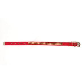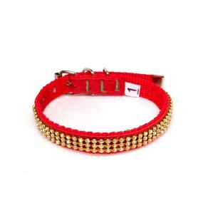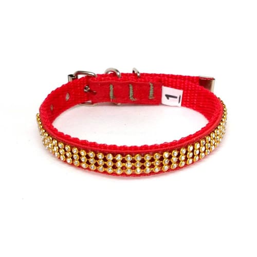 Tecido nylon com camurça todo cravejado de Strass; Costura reforçada; Fivela de Metal com regulagem de tamanho; Disponíveis cor: Vermelha Quantidades: kit com 4 unidades todas do tamanho nº 01. Medidas aproximadas: 24 cm a 34 cm de circunferência do pescoço, 1,5 cm de largura, Esta coleira é uma ótima escolha para as pessoas que buscam conforte estilo para passear com seu pet. Marca: Nica pet