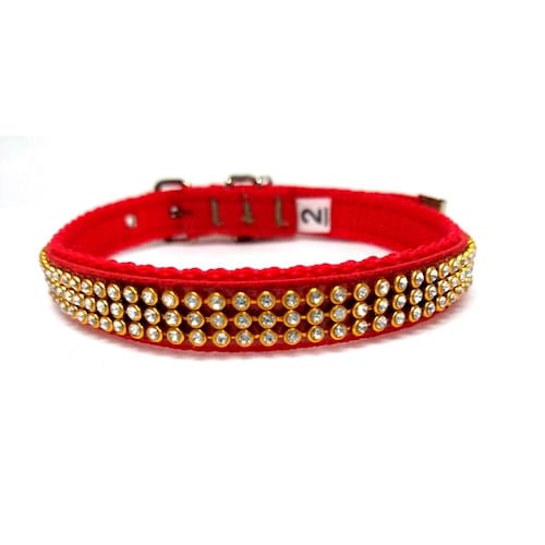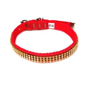 Tecido nylon com camurça todo cravejado de Strass; Costura reforçada; Fivela de Metal com regulagem de tamanho; Disponíveis cor: vermelha Quantidades: kit com 4 unidades todas do tamanho nº 02. Medidas aproximadas: 28 cm a 38 cm de circunferência do pescoço, 1,5 cm de largura, Esta coleira é uma ótima escolha para as pessoas que buscam conforte estilo para passear com seu pet. Marca: Nica pet Ean: 7435675111066