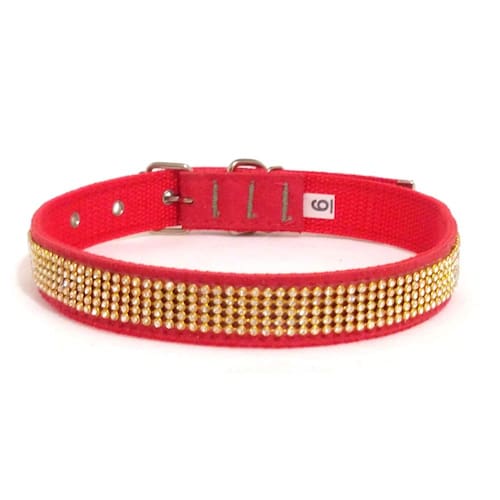 Tecido nylon com camurça todo cravejado de Strass; Costura reforçada; Fivela de Metal com regulagem de tamanho; Disponível na cor vermelha Medidas aproximadas: 42 cm a 54 cm de circunferência do pescoço, 2,5 cm de largura, Esta coleira é uma ótima escolha para as pessoas que buscam conforte estilo para passear com seu pet. Marca: Nica pet