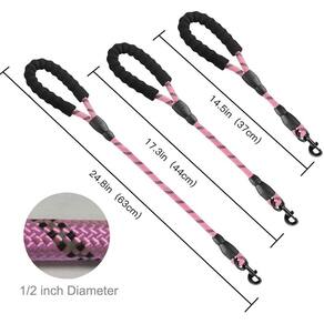 Características do produto: ? Corda de 2,5 cm de largura e 2 camadas de espessura ? Alça de espuma confortável ? Fios altamente reflexivos ? Clipe giratório de 360° resistente ? Inclui 3 tamanhos de coleira curta para cães (12,18,24 cm) Descrição do produto: ? As coleiras para cães são feitas de corda de nylon forte de 2,54 cm de largura e 2 camadas de espessura. ? Design de alça confortável com acolchoamento macio que ajuda você a manter a aderência firme e confortável. ? A escolha da correia para cães de 3 tamanhos é um equilíbrio perfeito entre liberdade e controle. ? As coleiras para cães com fios altamente reflexivos mantêm você seguro e visível em seus passeios noturnos. ? Ótimo para cães pequenos, médios e grandes caminhadas ao ar livre, corrida ou treinamento. ? Impede facilmente que o cão puxe sem danificar o cão. O produto inclui: ? Coleira curta para cães de 1 x 12 polegadas ? Coleira curta para cães de 1 x 18 polegadas ? Coleira curta para cães de 2,5 x 61 cm. - 3 tamanhos em 1 pacote: nossas coleiras para cães curtos têm 3 tipos de comprimentos. Proprietários de cães altos desfrutam da coleira de 38 cm, enquanto um cão mais curto geralmente é mais adequado para 19,5 ou 63,5 cm. Todas as medidas são de ponta a ponta, incluindo ferragens. - Alça confortável: possui uma alça acolchoada macia para evitar que seu pulso, nenhuma corda queime mais, possui alça acolchoada macia ajuda você a manter a aderência firme e confortável sem apertar suas mãos mesmo quando seu cão não puxa muito. - Material de qualidade: as trelas para cães curtos são feitas de corda de escalada forte de 1,27 cm de diâmetro. O clipe giratório de 360 ° resistente é de alta qualidade e durável o suficiente para fornecer um controle seguro de suas raças grandes, nunca se preocupe com isso se romperá do peitoral ou da coleira. - Segurança: esta coleira curta de treinamento para cães é feita de fios altamente reflexivos para manter alta visibilidade, garantindo que você e seu cão estejam seguros à noite. - Mantenha seu cão na posição perfeita de "salto": a coleira curta para cães mantém o cão ao seu lado em ruas lotadas ou em ambientes de alta distração, como no escritório do veterinário. Não se preocupe com seu amigo peludo correr fora de controle.