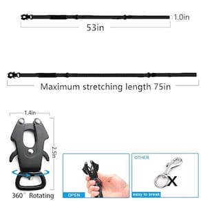 - Coleira para cães com absorção de choque: os elásticos de absorção de choque oferecem conforto para você e seu cão, comprovando e minimizando distensões nas costas e lesões musculares de cães excessivamente zelosos que tendem a puxar. É longo o suficiente para ele correr bem na frente ou bem para o seu lado, ótimo comprimento para correr em calçadas.